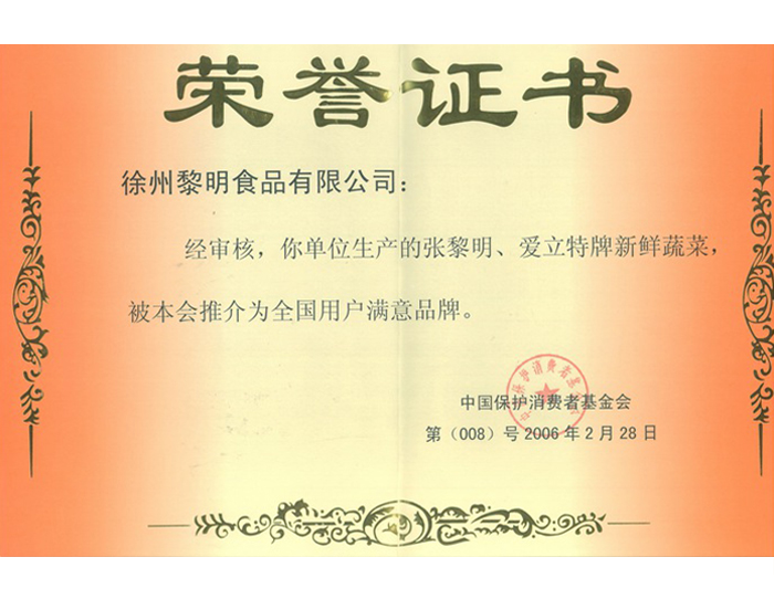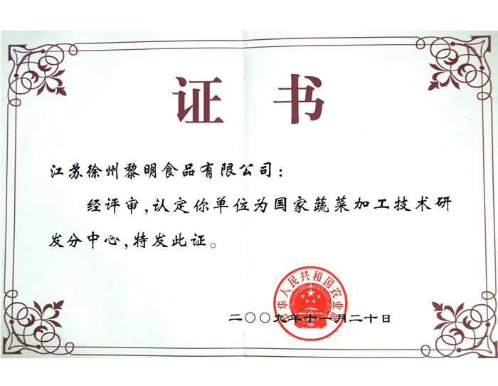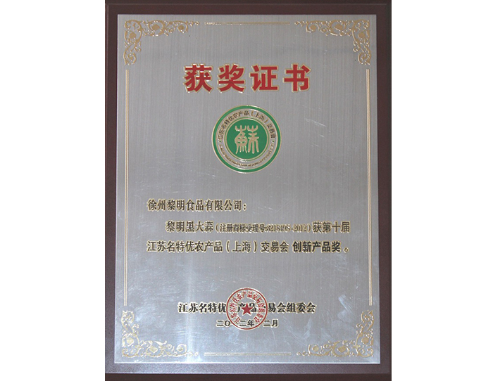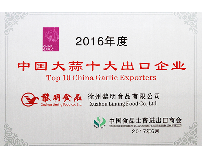 江蘇黎明食品集團有限公司先后榮獲“中國大蒜十大出口商”、“大蒜年會突出貢獻獎”榮譽稱號。